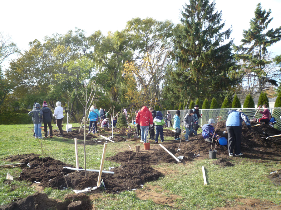 ACER volunteers and the Grade 3/4 students remeasured Assumption Catholic E.S.’s P4C plot. The trees look very large for their age- the school was built on land that was previously a peach farm. Students learnt how to measure root collar diameter, crown width and diameter at 1.3 m.