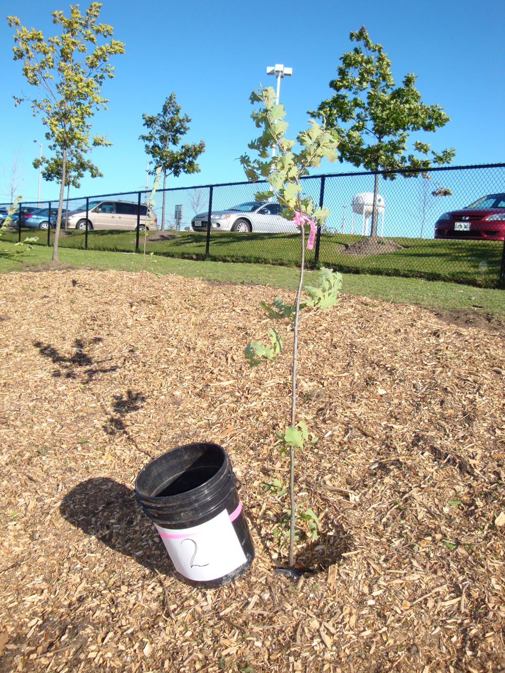 Thanks to the students at Christ the King S.S. in Georgetown for remeasuring their trees in their P4C site. The site was planted in 2008. Unfortunately, a Bur Oak had Gypsy Moth egg mass on it but other Bur Oaks were healthy. Students learnt how to measure root collar, crown diameter, diameter at 1.3m and assess the health of the trees.