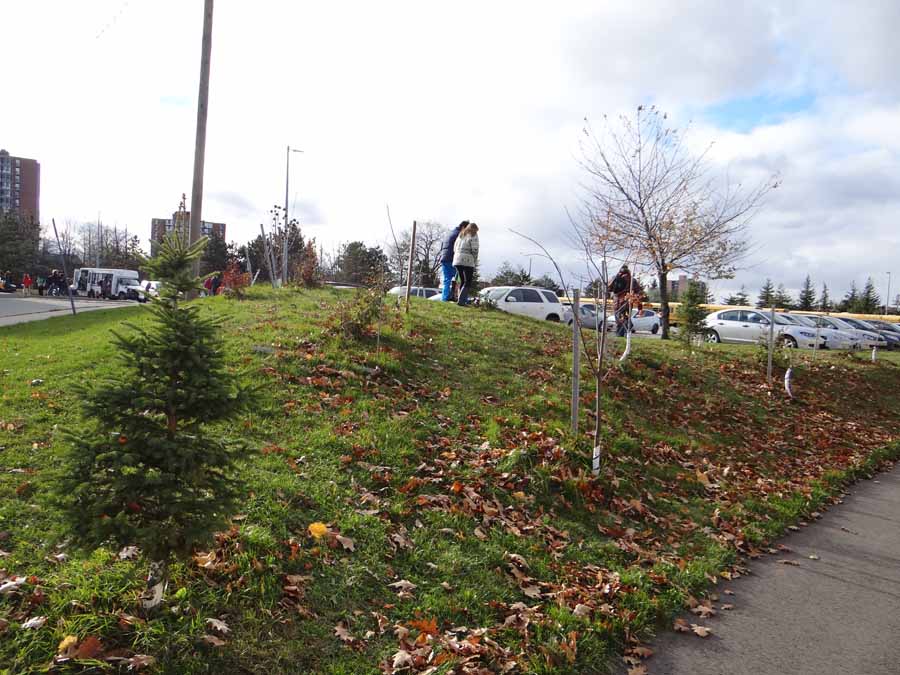 Thanks to the students at West Credit S.S. in Mississauga for measuring their trees that were planted in 2011. The trees are mostly healthy but were browsed (eaten by animals) near the root collar. The students watched our training videos and then took growth measurements such as root collar diameter, DBH and crown width. See the photo gallery below for photos from 2011 to 2014.
