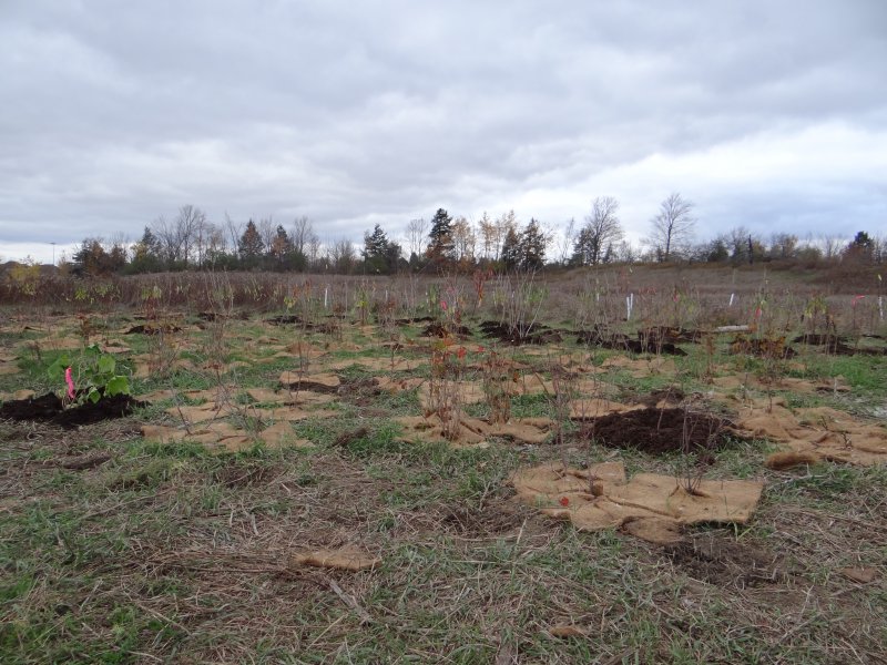 Approximately 35 students from East York Collegiate and Branksome Hall planted native trees and shrubs in Valleywood Park near Mayfield Road and Kennedy Road in Brampton. These dedicated volunteers removed invasive species (Buckthorn) that threaten the restoration project, cleaned up the site so it was free from litter, and of course they measured at least 10% of each native tree and shrub species planted to establish a baseline for future monitoring years to come.