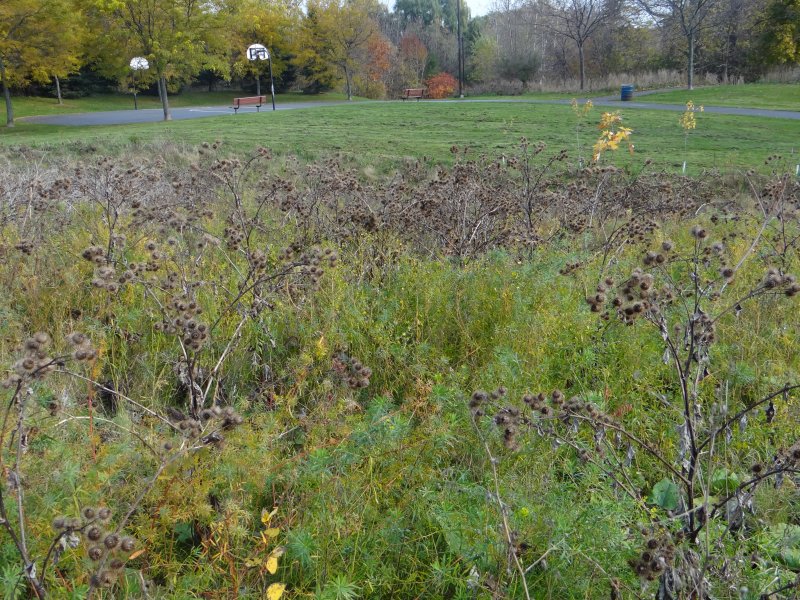 Approximately 50 people from the City of Mississauga’s Forestry staff planted 200 native trees and shrubs in Birchwood Park, a buffer zone to Birchwood Creek near Lakeshore Road West and Clarkson Road North in Mississauga. 16 youth volunteers from St. Joan of Arc Catholic Secondary School took on the next step of the program. These dedicated volunteers removed invasive species that threaten the restoration project including Phragmites australis (or common reed)  and weeds such as burdock, cleaned up the site so it was free from litter, and of course they measured at least 10% of each native tree species planted to establish a baseline for future monitoring years to come.