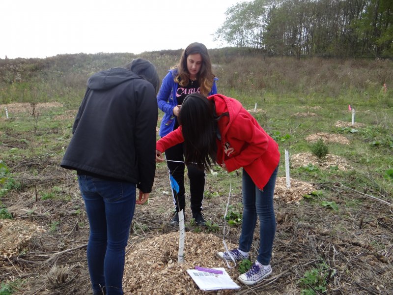 Approximately 50 people from the City of Mississauga’s Forestry staff planted 200 native trees and shrubs in Birchwood Park, a buffer zone to Birchwood Creek near Lakeshore Road West and Clarkson Road North in Mississauga. 16 youth volunteers from St. Joan of Arc Catholic Secondary School took on the next step of the program. These dedicated volunteers removed invasive species that threaten the restoration project including Phragmites australis (or common reed)  and weeds such as burdock, cleaned up the site so it was free from litter, and of course they measured at least 10% of each native tree species planted to establish a baseline for future monitoring years to come.