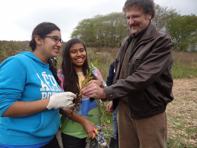 Approximately 50 people from the City of Mississauga’s Forestry staff planted 200 native trees and shrubs in Birchwood Park, a buffer zone to Birchwood Creek near Lakeshore Road West and Clarkson Road North in Mississauga. 16 youth volunteers from St. Joan of Arc Catholic Secondary School took on the next step of the program. These dedicated volunteers removed invasive species that threaten the restoration project including Phragmites australis (or common reed)  and weeds such as burdock, cleaned up the site so it was free from litter, and of course they measured at least 10% of each native tree species planted to establish a baseline for future monitoring years to come.