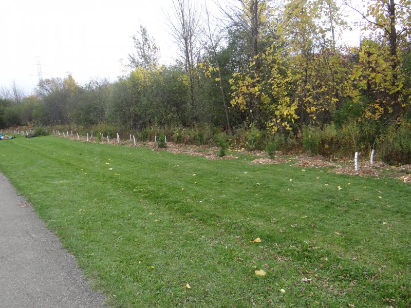 Approximately 95 adult and youth volunteers from the Mississauga Chinese Alliance Church and the Peel Environmental Youth Alliance (PEYA) came out to a community event organized by ACER, the City of Mississauga, and EcoSoure at the Iceland Arena Restoration Area, a buffer zone to Little Etobicoke Creek. The day was a great success – invasive species such as buckthorn were removed, over 200 native trees and shrubs were planted, and community members monitored at least 10% of each tree species planted to establish a baseline for future monitoring years to come.