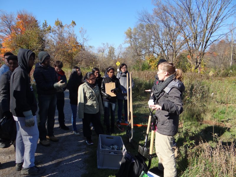 Approximately 70 people from Bond Brand Loyalty planted over 300 native trees and shrubs in White Willow Common, a buffer zone to Fletcher’s Creek near Mavis Road and Courtneypark Drive in Mississauga. This is part of White Willow Common’s ongoing restoration which the City of Mississauga started in the mid-1990s. On October 22nd, 2014 a group of 19 youth volunteers from St. Joan of Arc Catholic Secondary School took on the next step of the program. These dedicated volunteers removed invasive species that threaten the restoration project such as buckthorn and dog-strangling vine, cleaned up the site so it was free from litter, and of course they measured at least 10% of each native tree species planted to establish a baseline for future monitoring years to come.