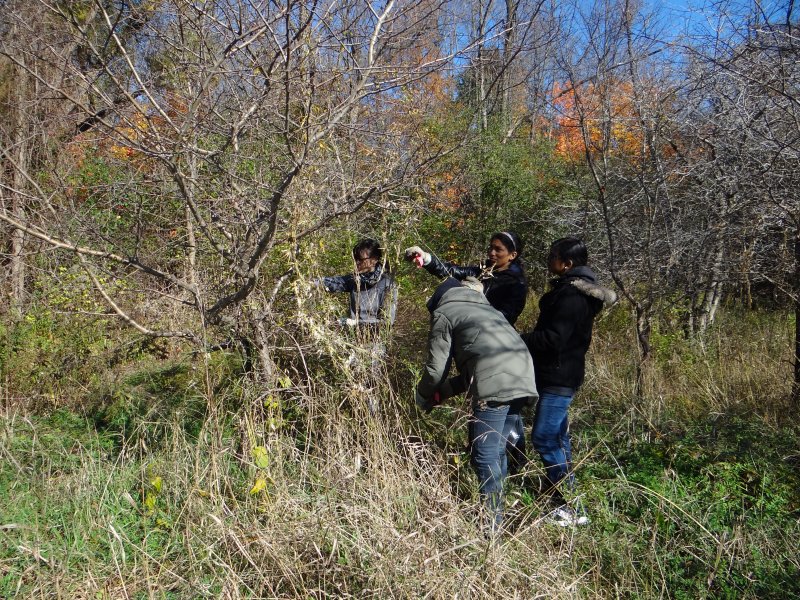 Approximately 70 people from Bond Brand Loyalty planted over 300 native trees and shrubs in White Willow Common, a buffer zone to Fletcher’s Creek near Mavis Road and Courtneypark Drive in Mississauga. This is part of White Willow Common’s ongoing restoration which the City of Mississauga started in the mid-1990s. On October 22nd, 2014 a group of 19 youth volunteers from St. Joan of Arc Catholic Secondary School took on the next step of the program. These dedicated volunteers removed invasive species that threaten the restoration project such as buckthorn and dog-strangling vine, cleaned up the site so it was free from litter, and of course they measured at least 10% of each native tree species planted to establish a baseline for future monitoring years to come.