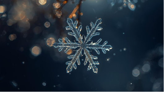 Snowflakes, the delicate symbols of winter, form when cold water droplets freeze around dust or pollen particles, creating six-sided ice crystals that grow as they fall. Their perfect symmetry comes from the molecular structure of water—two hydrogen and one oxygen atom forming stable hexagonal patterns through hydrogen bonding. This same chemistry explains why ice floats, allowing aquatic life to survive beneath frozen lakes and driving vital spring water mixing. The size and shape of snowflakes depend on temperature, humidity, and how quickly they form, while geography—altitude, latitude, and nearby lakes—determines when and where snow falls. Each snowflake is a tiny masterpiece of science, climate, and art. Next time it snows, step outside with a dark cloth and magnifying glass to discover the beauty of nature’s frozen art for yourself! And, if you want to read more about the science behind the ART of the snowflake, check out ACER’s blog post here!
